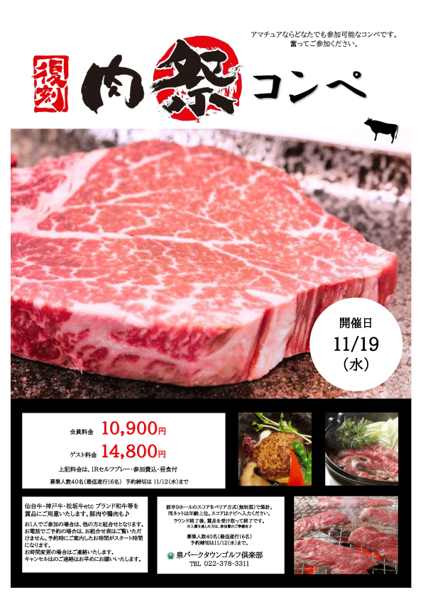 11/19(水) オープンコンペ 「肉祭りハーフコンペ」のご案内